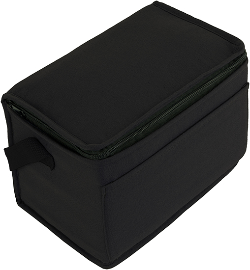Description: Eco 6 Can cooler bag made from 8oz recycled cotton and cotton webbing handles. Zip around closure and handy front pocket. Food Safety Certificates available.